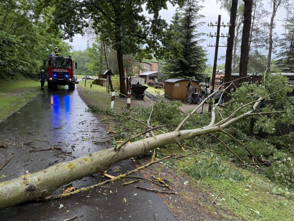 Wir wurden zur Unterstützung und zur Abarbeitung der vielen Einsätze in die Ortslage Simmersdorf/Groß Schacksdorf alarmiert. Schon auf der Anfahrt haben wir einige Sturmschäden von den Straßen beseitigt.